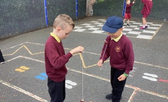 As part of our Bovey 50 pledge, Phase 2 had a go at playing conkers, which was great fun for all. The children really enjoyed collecting conkers and bringing them into school. We are really grateful to the people at Bovey Shed who volunteered to drill the holes in the conkers, making a great link with community projects.