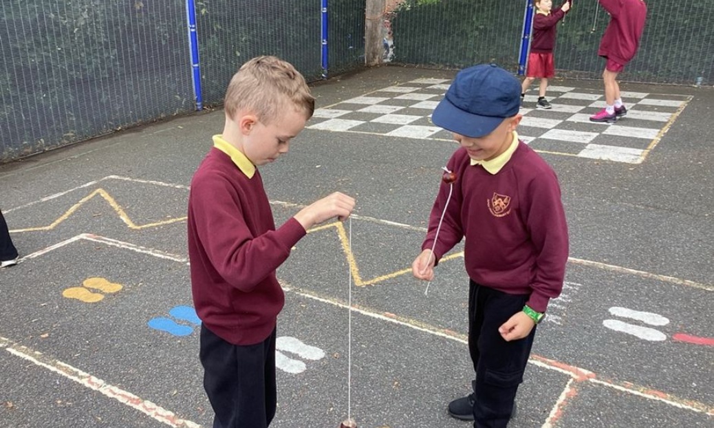 As part of our Bovey 50 pledge, Phase 2 had a go at playing conkers, which was great fun for all. The children really enjoyed collecting conkers and bringing them into school. We are really grateful to the people at Bovey Shed who volunteered to drill the holes in the conkers, making a great link with community projects.